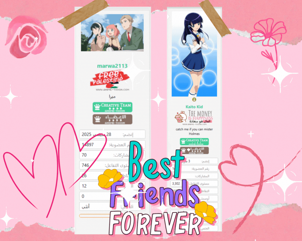 اسمي المستعار هو "ميرا" الانمي المفضل عندي هو spy x family و المانجا الي اتابعها wee!!