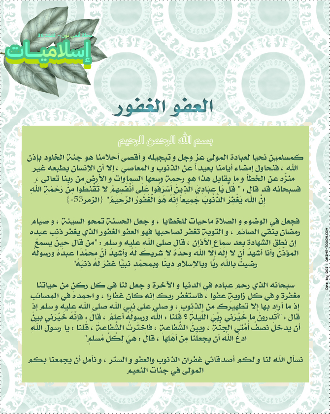 نكت، إسلاميات ... ويختم بموضوع تفاعلي للعدد (لغز/مسابقة .. الخ)